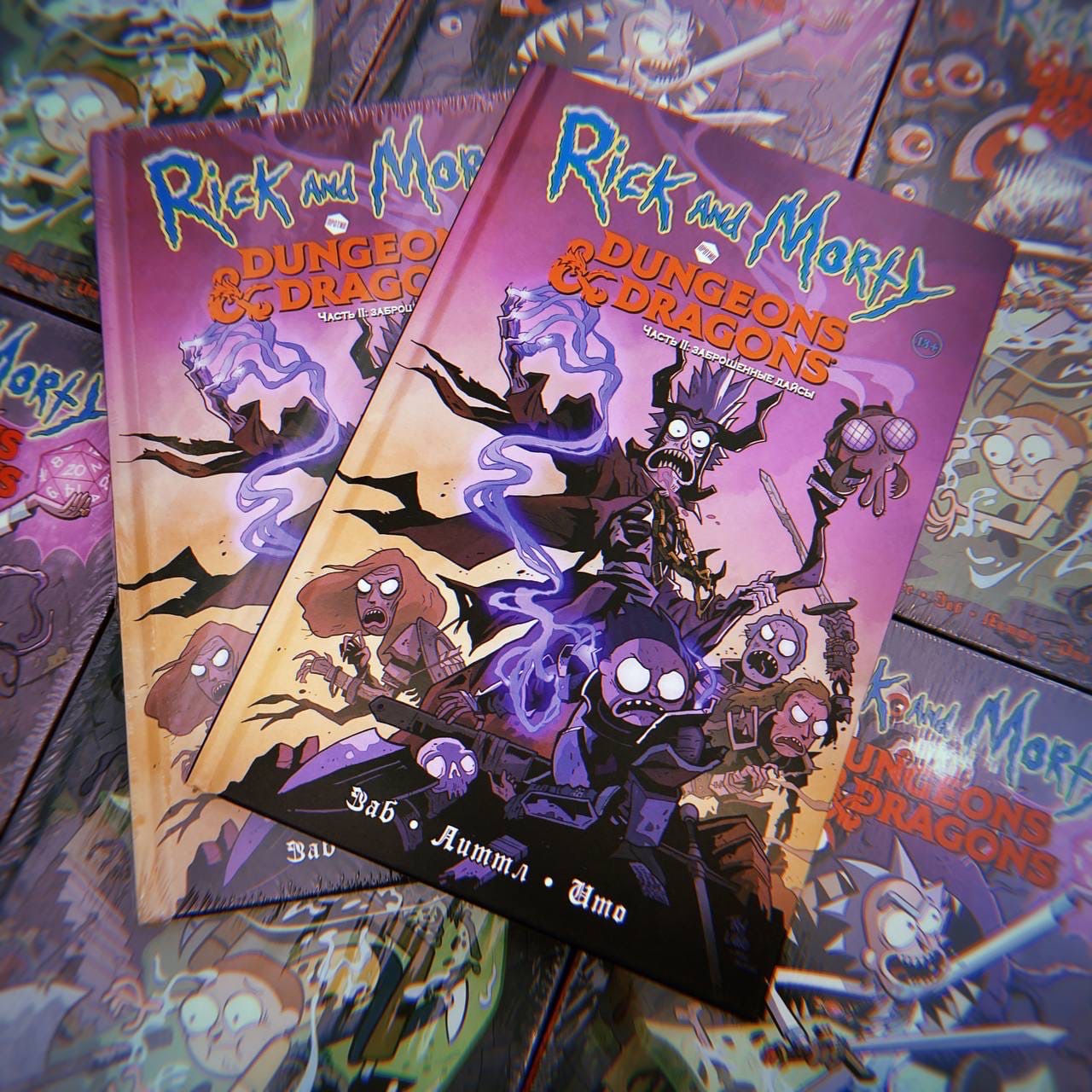 Самым близким по задумке в мульте можно назвать эпизод про озабоченных шлюходраконов из 4 сезона, но в нём Рик осмеивает магию и не проникается незримой волшебной атмосферой фэнтезийного мира. Наоборот, после инцест-оргии со своей семьей и кучкой драконов наши герои предпочтут поскорее помыться и никогда не вспоминать о кучах лута, загадочных артефактах и средневековых замках, так что шанс увидать приключение анимированных Рика и Морти во всей красе подобного сеттинга в ближайшее время критически мал. Слава Дайсам, комиксы этой серии отвечают на этот весьма специфический и мудреный вызов, заполняя 20-гранную дыру в нашем сердечке, о которой мы и не представляли. Первый комикс рассказывал историю становления Морти на путь ролевика. Смиты и дедок-олд помогли Морти понять истинную суть ролевых игр, их предназначение и красоту. Во втором томе авторы позволят нам взглянуть на D&D с двух новых сторон: из-за ширмы Данженмастера и с точки зрения персонажей.