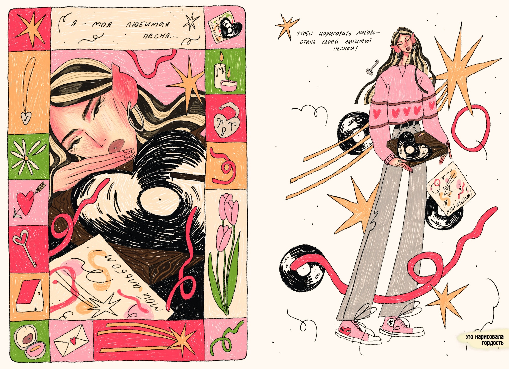 Авторы работали в разных техниках и стилях, без штампов и ограничений. Иллюстрации поражают своей искренностью, фантазией и стремлением выразить это многогранное чувство на бумаге.
