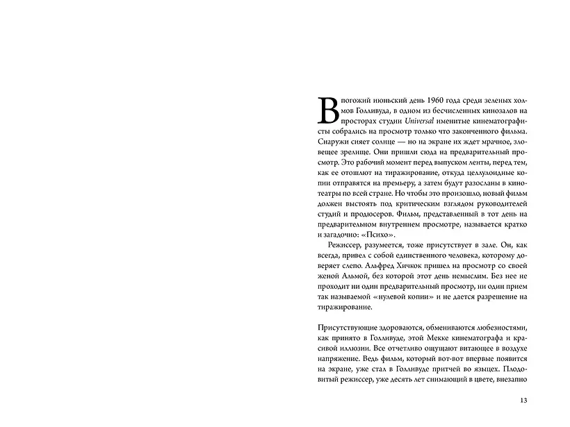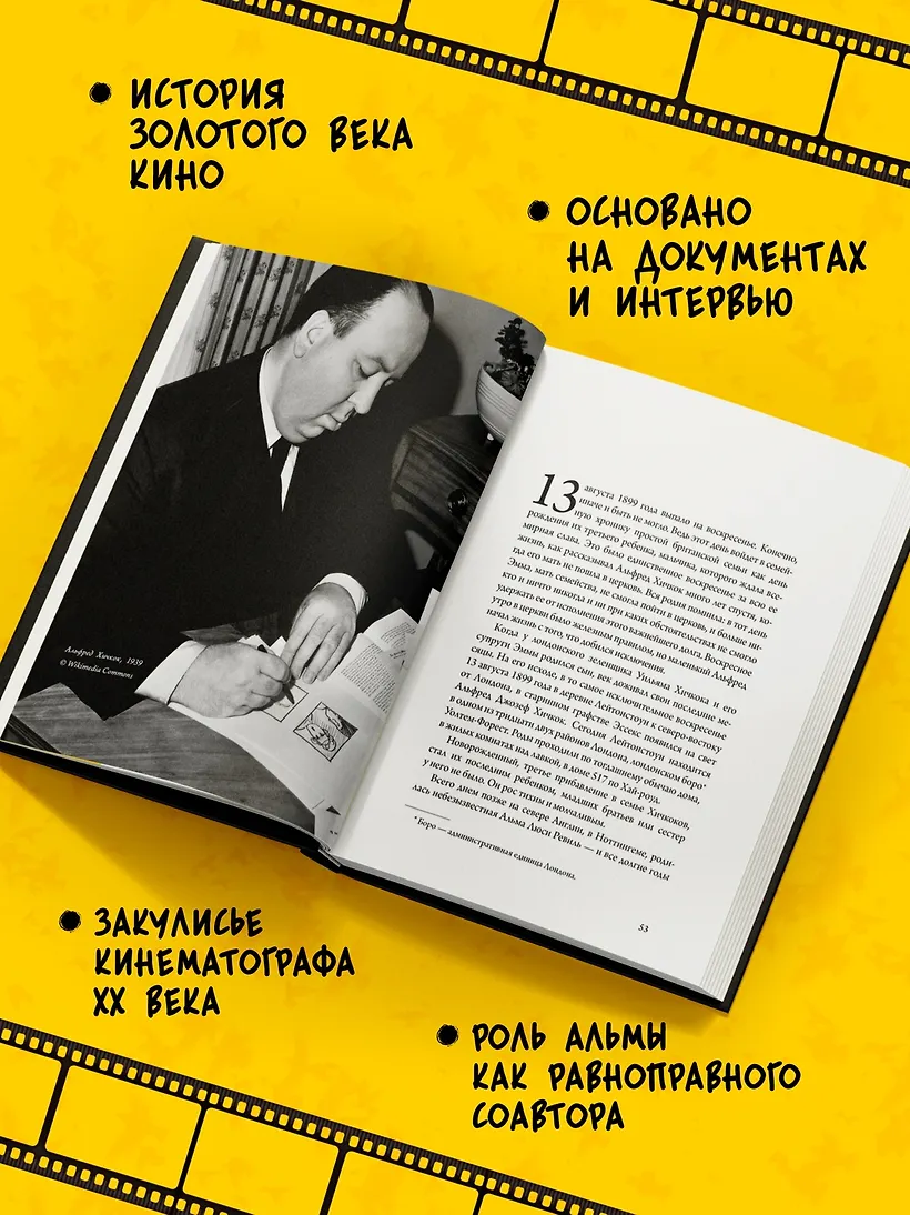 Писатель и киновед Тило Видра создал первую двойную биографию легендарной творческой пары «Альма и Альфред Хичкок», опираясь на огромный массив документов и многочисленные интервью. Внимательно и восхищенно наблюдая за главными событиями и фильмами в жизни этой пары, автор создал великолепную работу по истории кино XX века. Хичкоки на протяжении всей своей жизни были первопроходцами, раз за разом находившими идеальную форму для выражения своего видения. Вместе они создали такие шедевры, как «Психо», «Окно во двор», «Поймать вора», «Головокружение» и «Птицы».