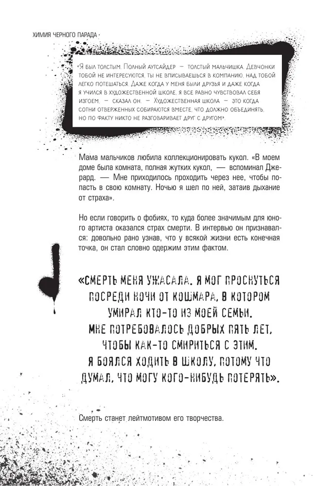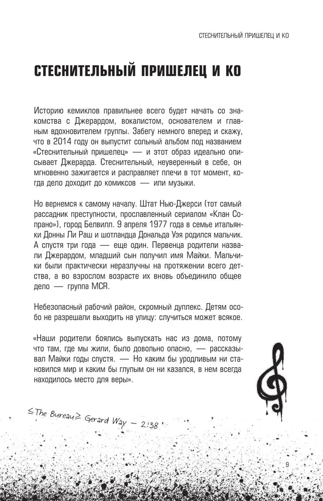 Новая книга из серии о рок-легендах идеально дополнит коллекцию фанатов рок-музыки Узнайте на страницах, как солист My Chemical Romance Джерард Уэй продвигал свою музыку в студенческой газете. Как внезапное знакомство с Джеффом Рикли из Thursday привело сначала к первому концерту в штате Нью-Джерси, а затем и к записи дебютного альбома "I Brought You My Bullets"? И что делает альбом "The Black Parade" культовым? Читайте, чтобы не пропустить!