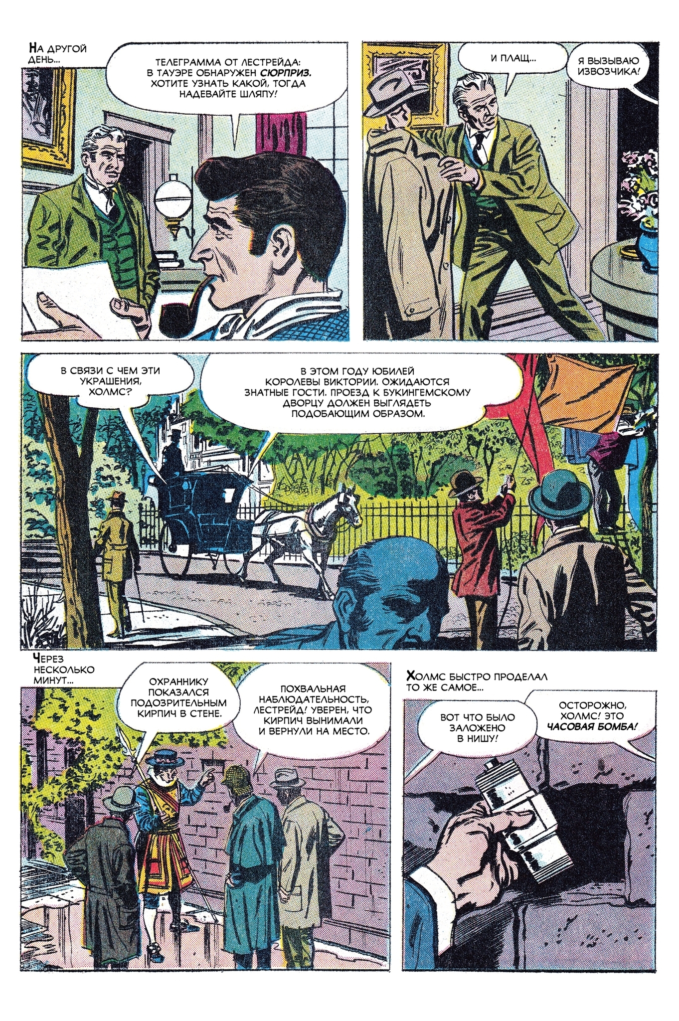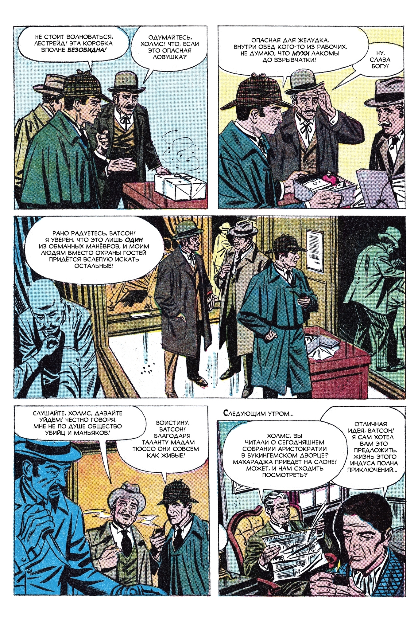 Представляем вам редкий комикс «Новые приключения Шерлока Холмса», впервые изданный в США в 1961 году. Исчезнувший корабль, подменённый груз, взрывы в центре Лондона и покушение на восточного принца — перед вами целый калейдоскоп тайн, с которыми сталкивается великий сыщик. Для поклонников Конан Дойла и дымных причалов Темзы. Внутри вы найдете: «Шерлок Холмс» (New Adventures of Sherlock Holmes) — Four Color #1245 (декабрь 1966), Dell