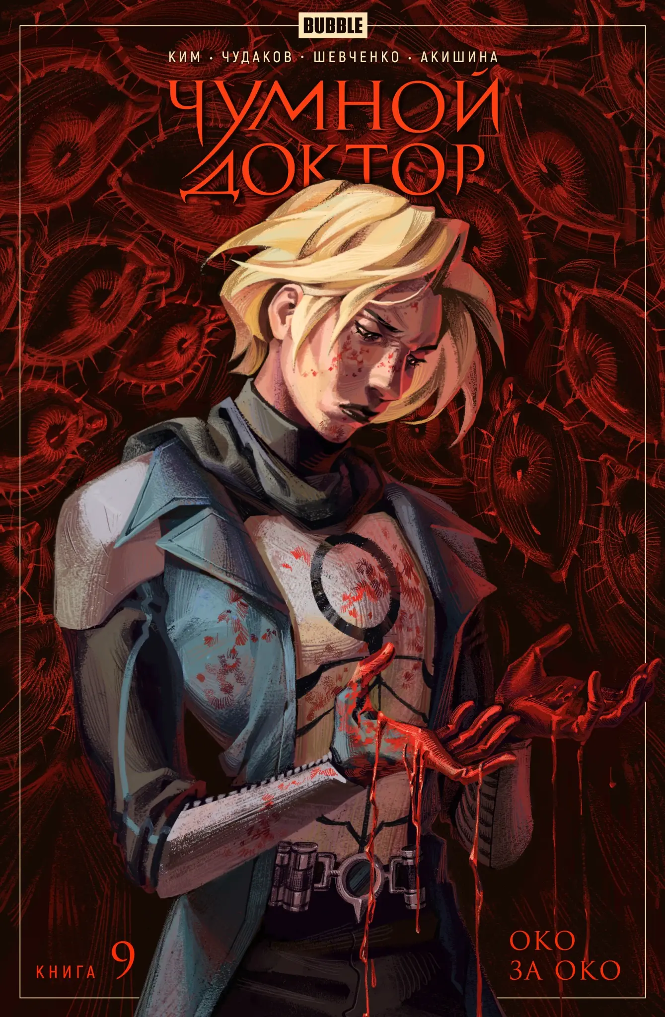 но у оставшихся на свободе фанатиков под предводительством брата Василия, кажется, свои планы на этот счёт. Внезапно оба расследования начинают переплетаться друг с другом, и мечта Максима о встрече с Чумным Доктором вот-вот сбудется… но кто из героев найдёт в себе силы в решающий момент совершить правильный выбор? Ответ скрывается в девятом томе серии комиксов «Чумной Доктор» от издательства BUBBLE.