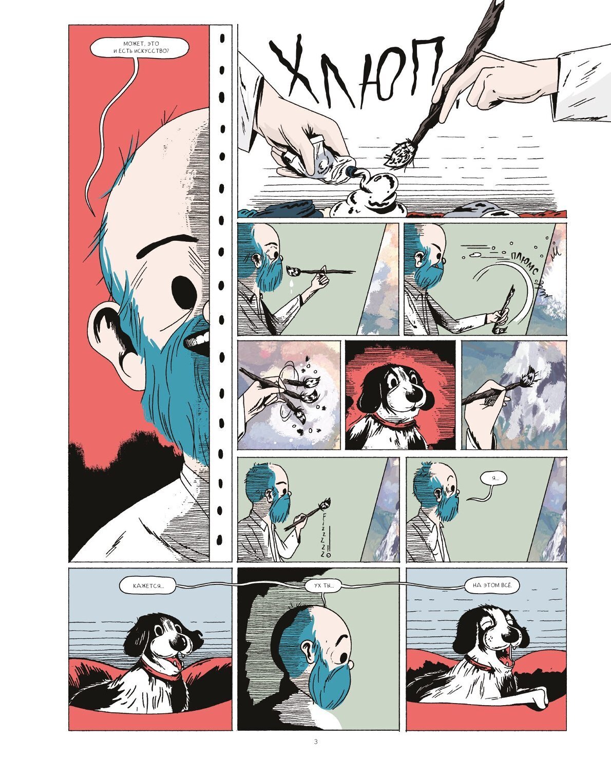 Это история про двух художников: успешного и популярного кошатника Ханса Фортуну и Джона Угрюмза, который находит любое оправдание своим творческим неудачам и до последнего откладывает работу над возможным шедевром. А ещё это история про прекрасного пса, что внезапно появляется в жизни Джона и становится его главным источником вдохновения.