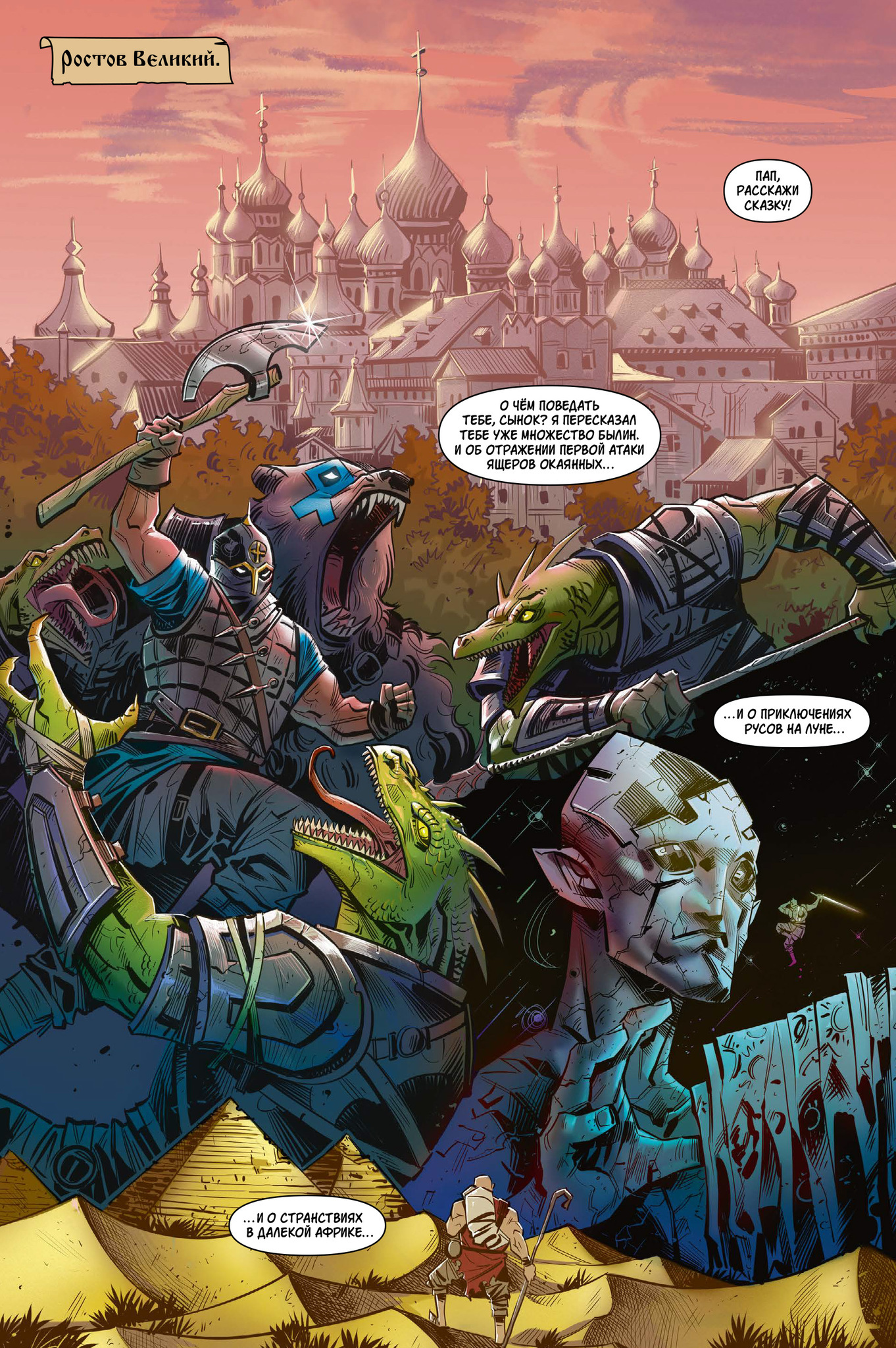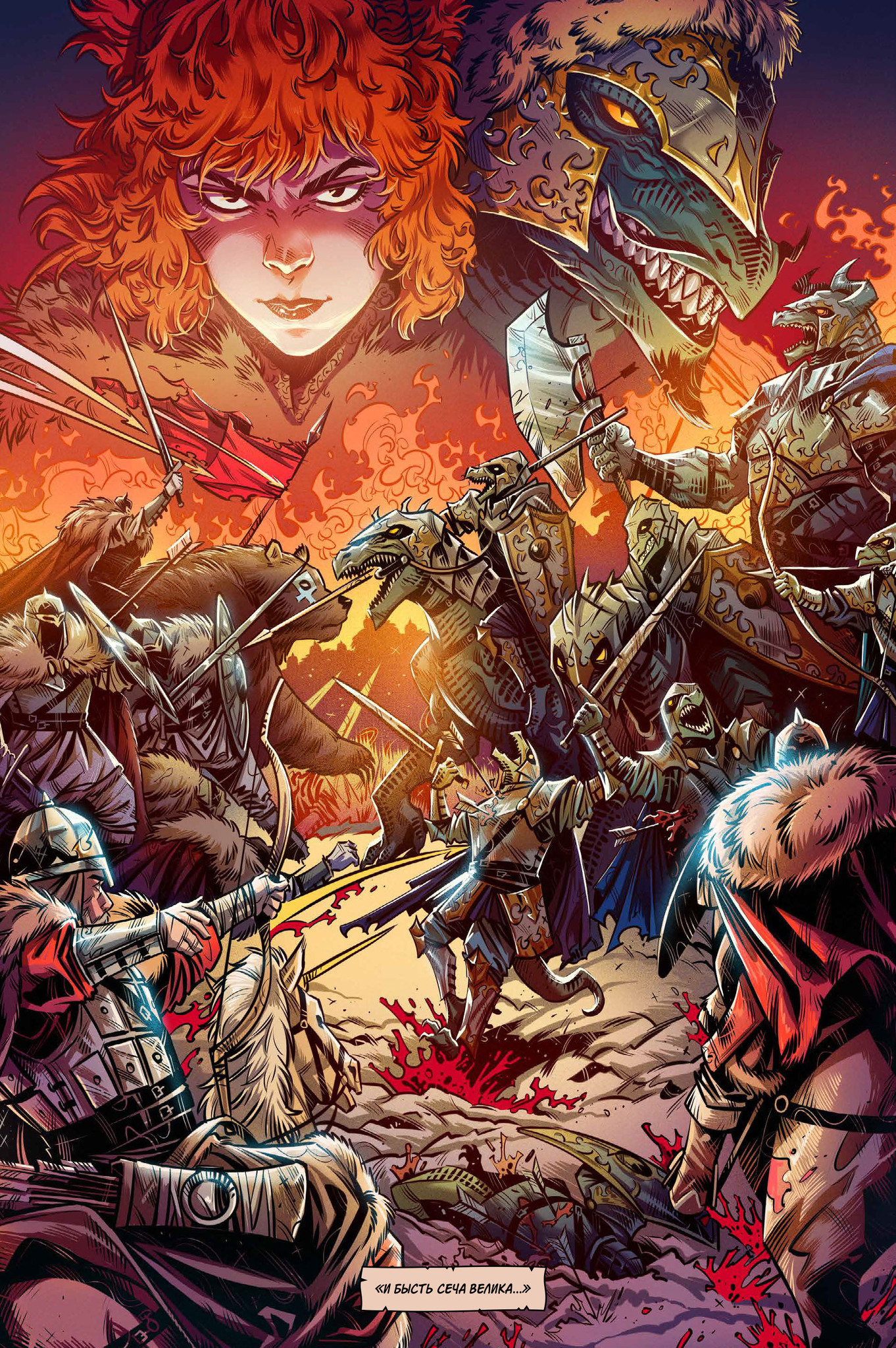 Вторая трилогия комиксов «Русы против ящеров» получает своё полное издание! Первые три выпуска рассказывали о похождениях Дрочеслава, Всеслава и Радислава и были скорее юмористическими сборниками эпизодов с условной сквозной линией, но вот дальше... Полноценная сюжетная арка из трёх выпусков, повествующая о кровопролитной войне между русами, во главе с храброй Ольгой, и ящерами, под покровительством хитрого Курт-Хана. Масштабные битвы, запоминающиеся герои, неожиданные повороты — всё это уже ждёт вас внутри!