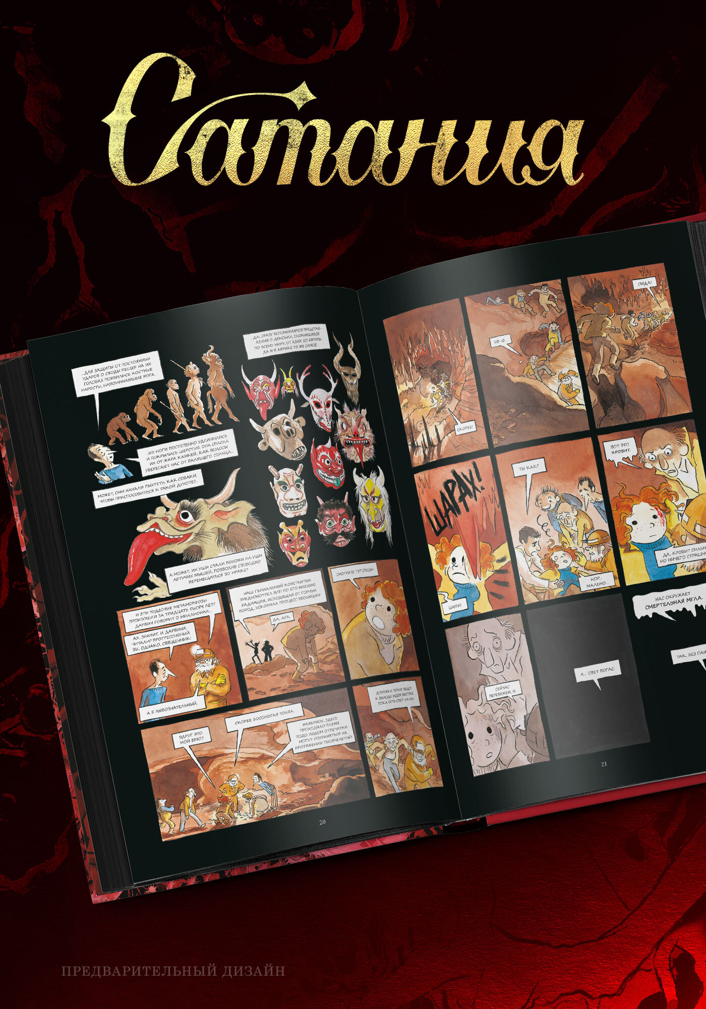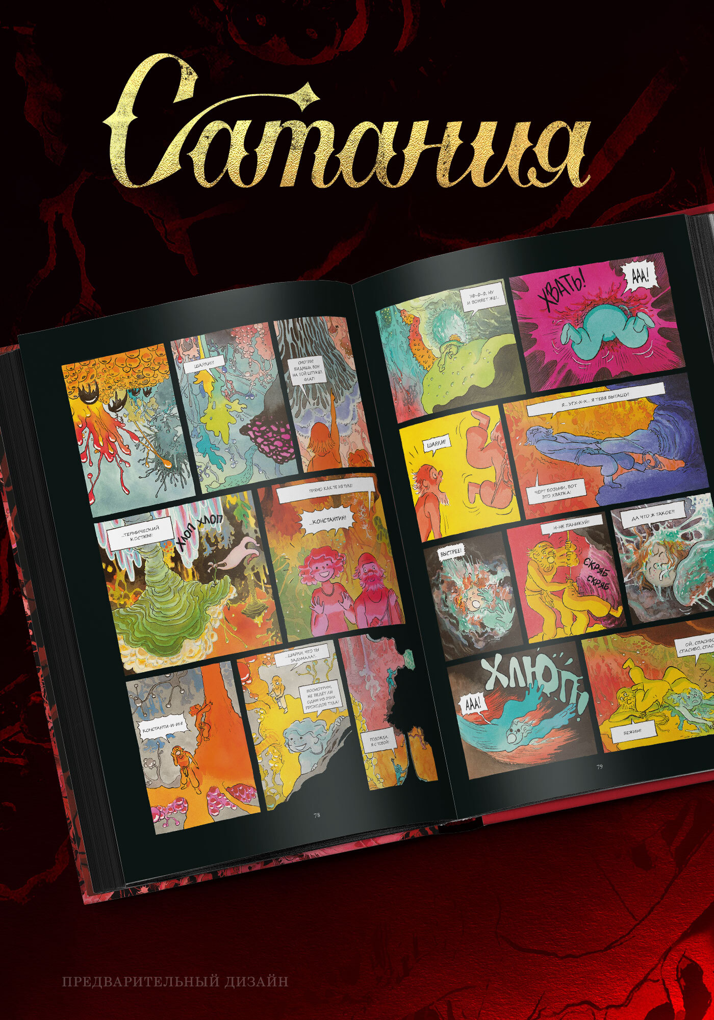 За ширмой приключенческого рассказа о путешествии к центру Земли скрывается история о внутренних демонах, таких разных, но, вырвавшись на свободу, одинаково уродливых. Изобретательный дизайн обитателей глубин настраивает читателя на нужный лад, а необычная работа с цветом и кадром превращает «Сатанию» в нечто принципиально новое и уникальное.