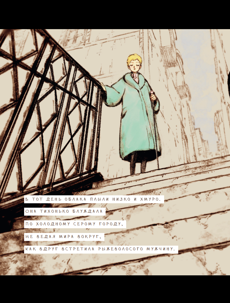 Вуаль — удивительная история, в которой нет имён и точных дат — только чистые чувства, тонкие диалоги и потрясающие полноцветные иллюстрации, создающие невероятную атмосферу романтики. Коттэри мастерски передаёт хрупкость зарождающейся любви через простые, но глубокие моменты: от совместного наслаждения ароматом до молчаливого понимания без слов.