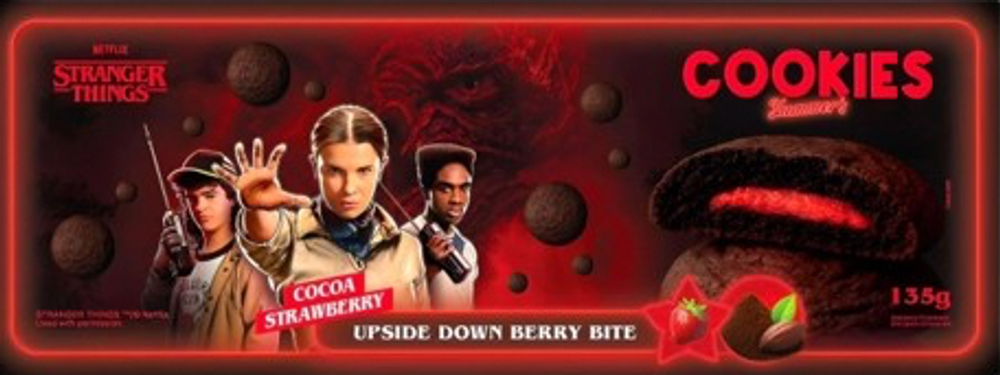Состав: Пшеничная мука, сахар, растительные масла (пальмовое, рапсовое), какао-порошок, глюкозный сироп, фруктозный сироп, крахмал, сухое молоко, клубничный концентрат, эмульгаторы (соевый лецитин, Е471), разрыхлители (гидрокарбонат натрия, гидрокарбонат аммония), соль, ароматизаторы, краситель (Е120), увлажнитель (глицерин).