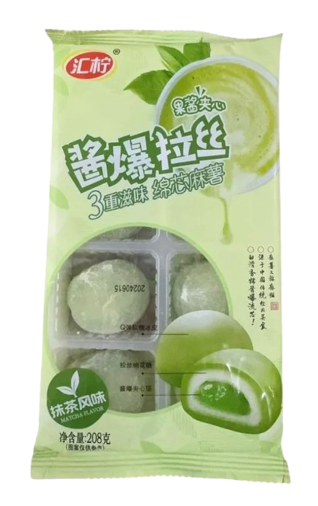 Состав: мальтозный сироп, рисовая мука, питьевая вода, крахмал, ароматизатор «вкус матча» (добавлено более 10%), маршмеллоу (добавлено более 8%), растительное масло, пищевые добавки (пропилпарабен, сульфатированный эфир, желатин, моно- и диглицериды жирных кислот, медный хлорофилл натрия, тартразин, ярко-жёлтый краситель), порошок матча, комплексная приправа
